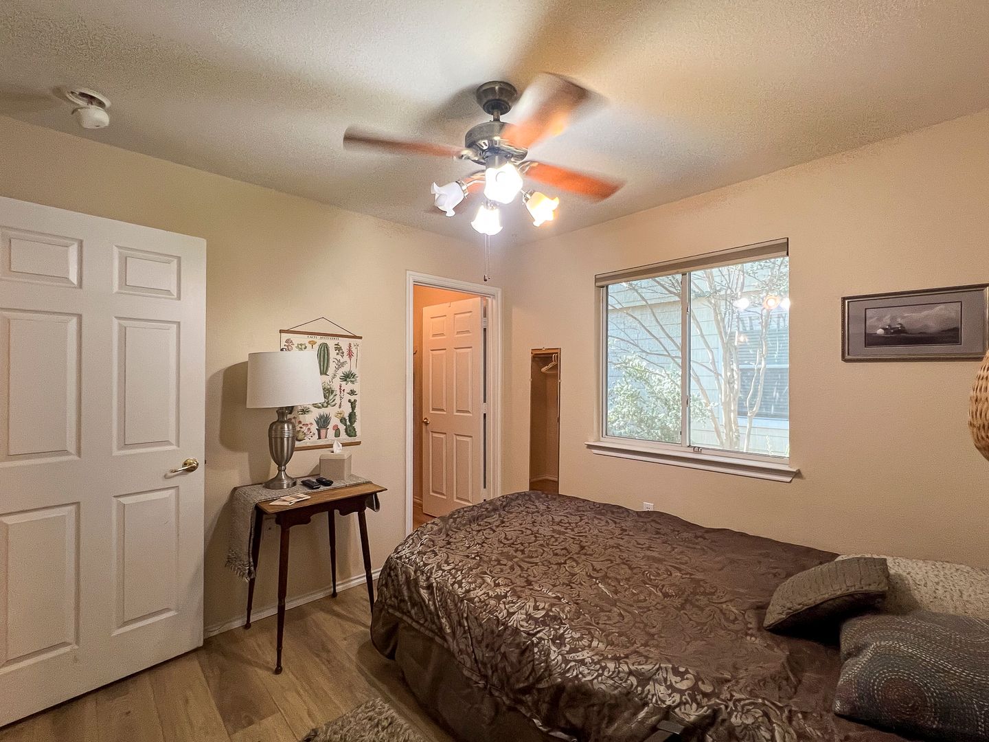 · 2 bedrooms, with ceiling fans and cellular window shades; front bedroom has flat-screen TV with roku device